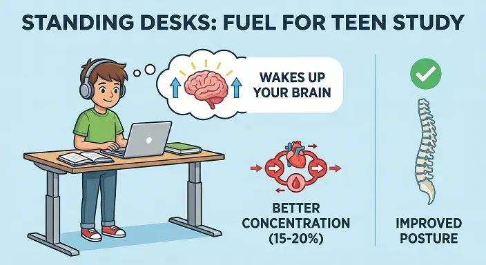 Standing desks aren't just trendy—they're study heroes for teens. Ditch the slump, stand tall, and watch focus explode. Parents, surprise your teen with one; students, ask for a trial. Better posture, sharper mind, epic grades—your study game just got unbeatable. Who's ready to stand and conquer?