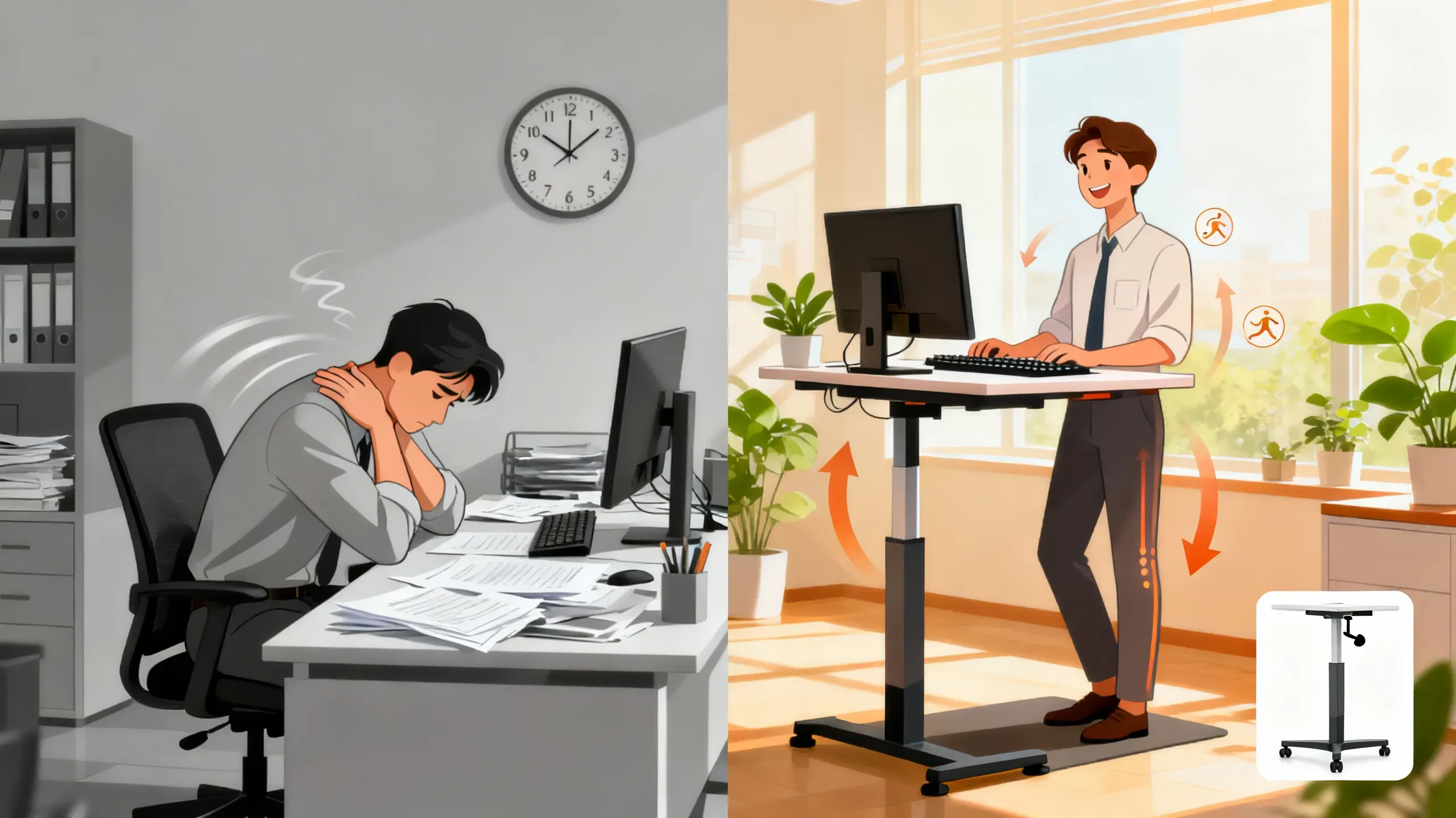 Bottom line: mental stress from heavy workload, interruptions and low control can cause both emotional problems and physical pain. Fixing job demands, improving support, and using better workstations can help. A height-adjustable table is a simple, practical tool that reduces sitting time, eases muscle tension and gives both the body and mind a quick reset during a busy day. Implemented with clear work practices and small movement breaks, it can lower pain, reduce stress and help people feel better and work better.